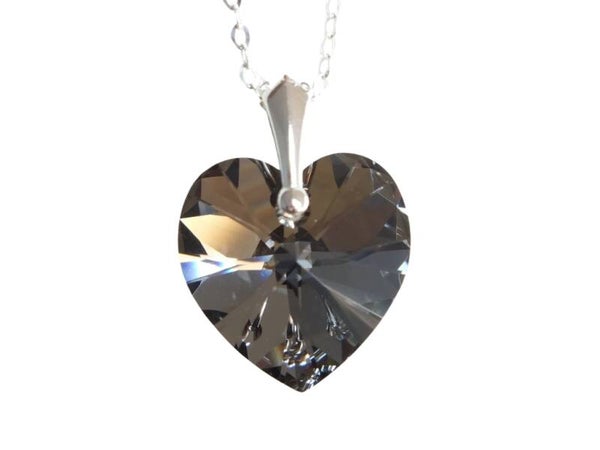 Swarovski® Elements hart in de kleur Crystal Silver Night, zilvergrijs, hangend aan een sterling zilveren ketting.
