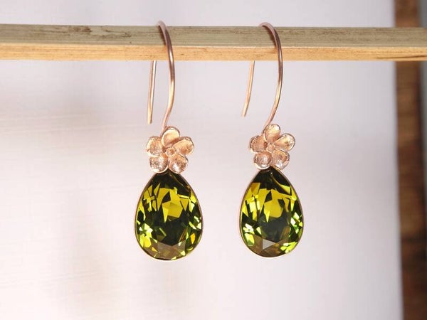 Olivine Druppel Oorbellen Bloem, rosé verguld.