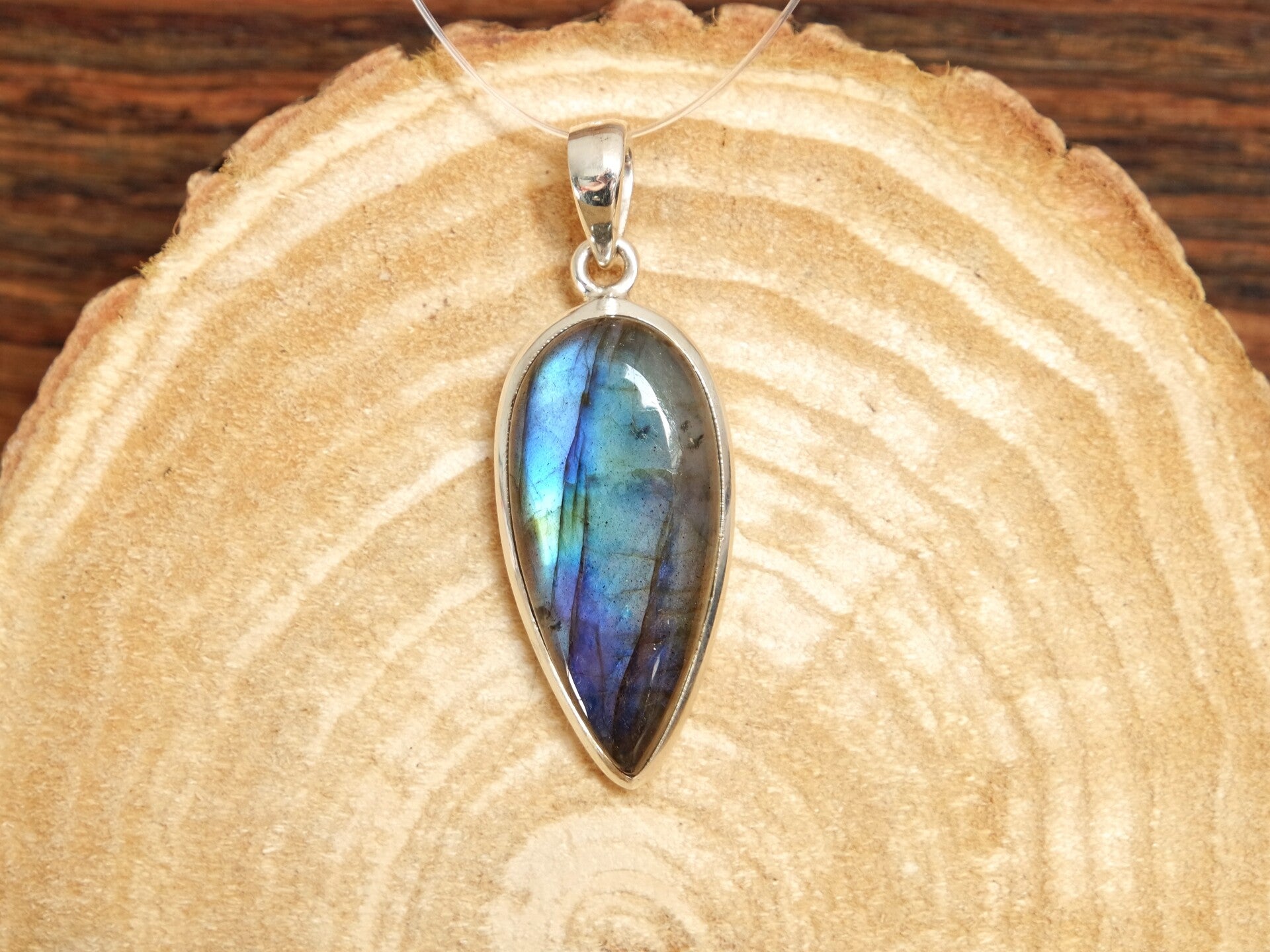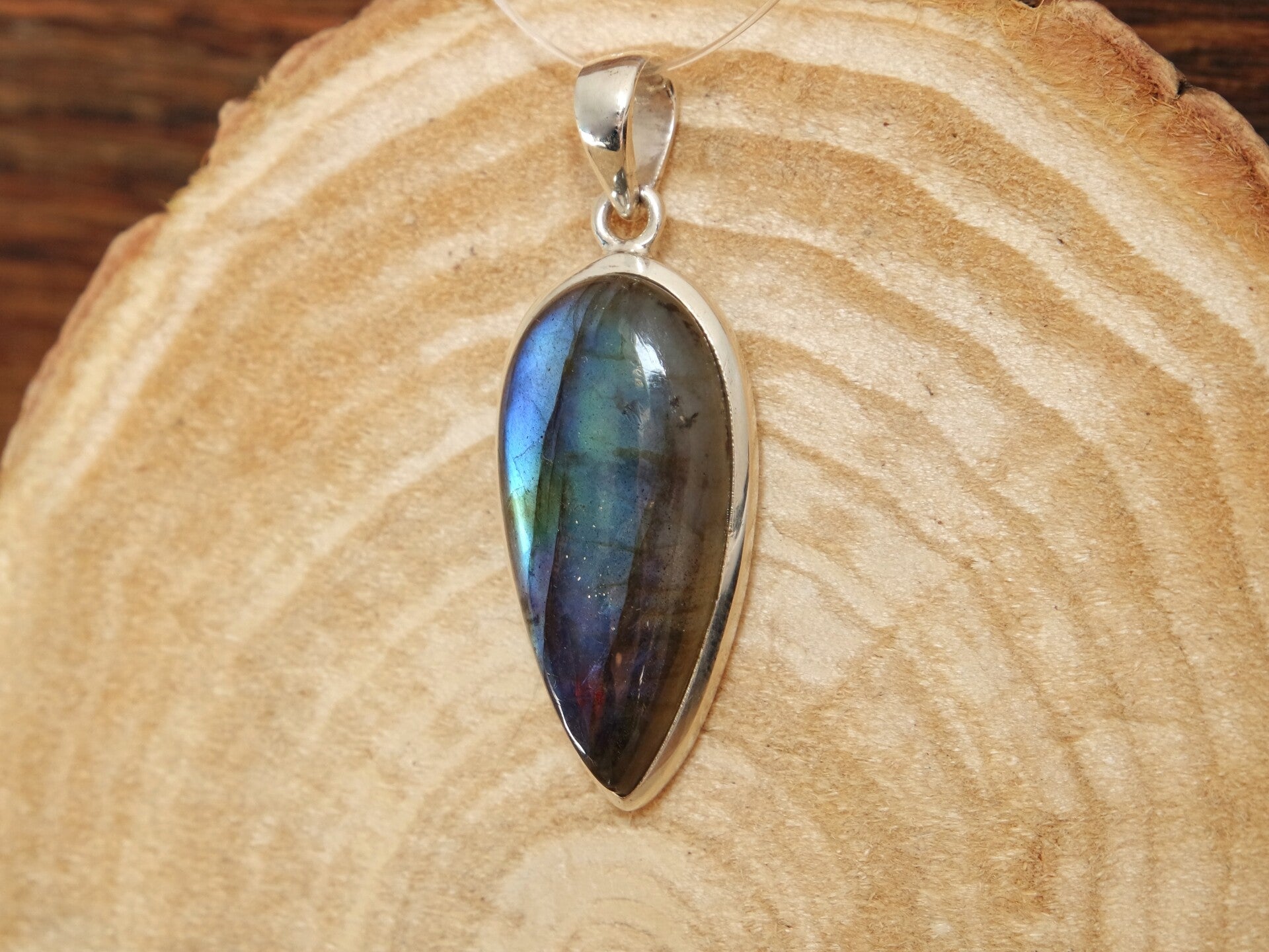 Exclusieve edelsteenhanger van labradoriet en sterling zilver.