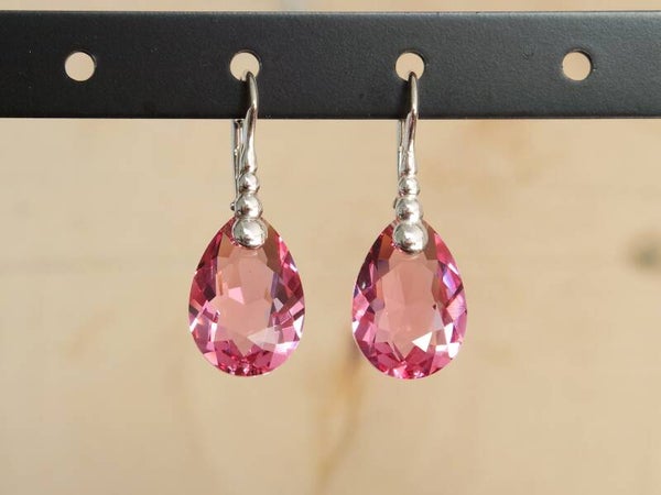 Sterling zilveren oorbellen met echte Swarovski® elements: druppels in de kleur Rose.