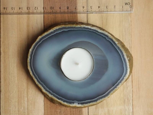 De waxinelichthouder van agaat heeft een gewicht tussen de 300 en 600 gram.