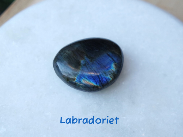 De zaksteen van labradoriet is 2,5 - 3,5cm lang