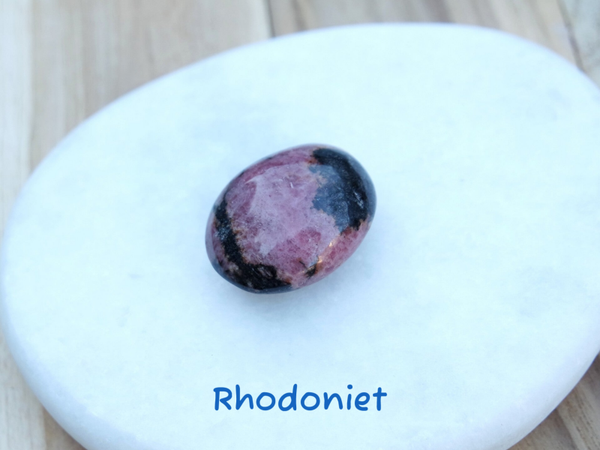 De zaksteen van rhodoniet is 2,5 - 3,5cm lang