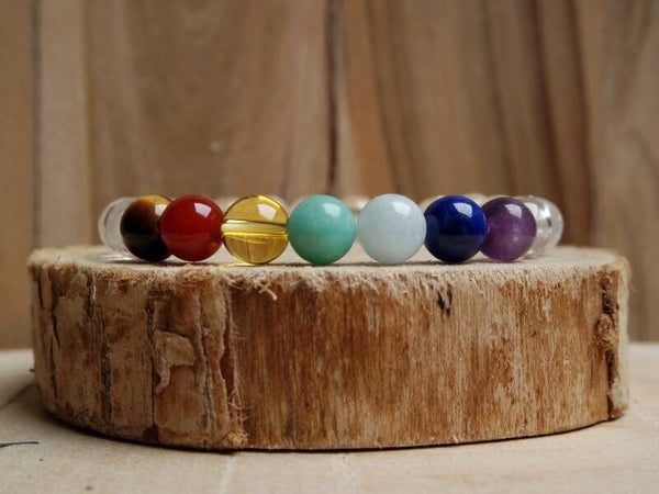 Armband: bergkristal, tijgeroog, carneool, citrien, aventurijn, aquamarijn, lapis lazuli en amethist