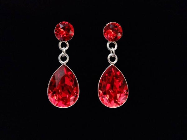 De kleur van de Scarlet Swarovski Elements is rood, de precieze kleur is afhankelijk van de hoeveelheid licht die op de oorbellen schijnt.