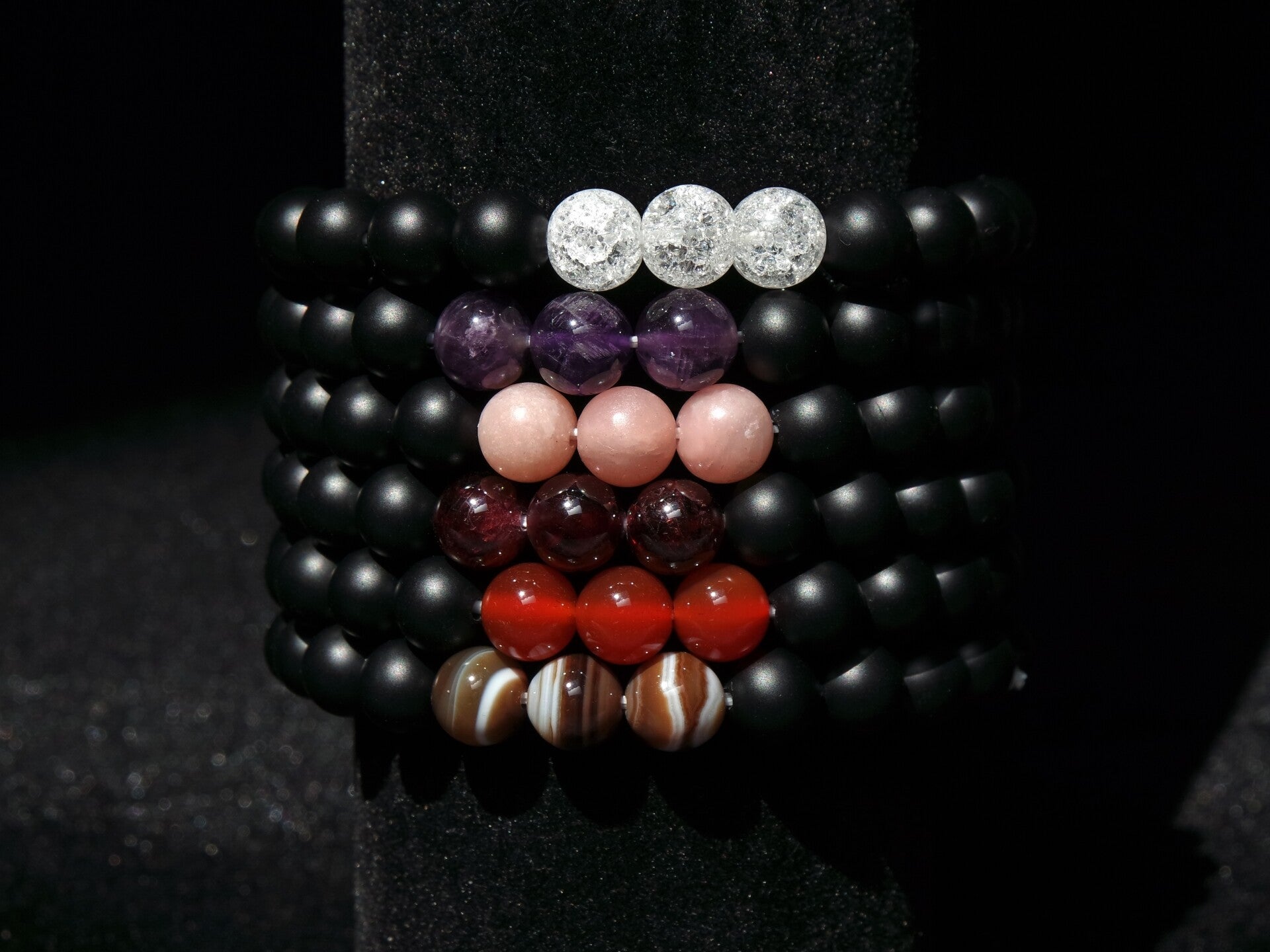 De verschillende mogelijke edelstenen voor de handgemaakte armband zijn: