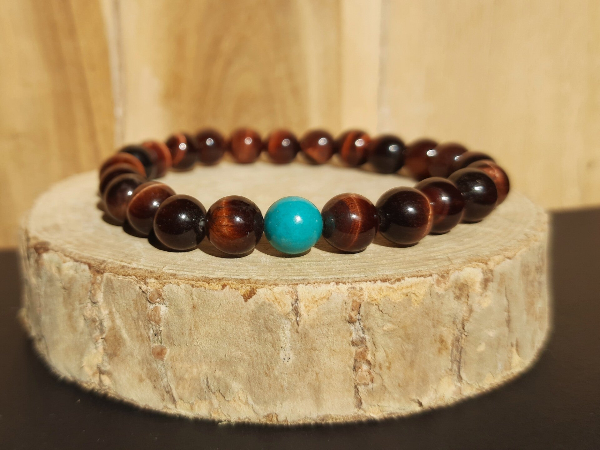 Armband: Rood Tijgeroog & Turkoois