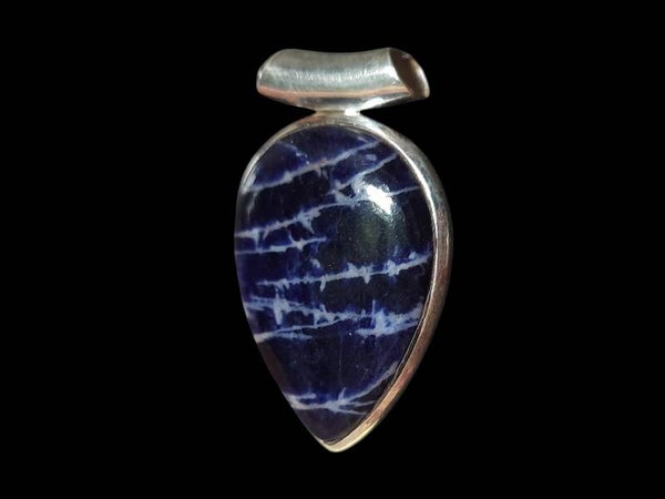 Exclusieve edelsteenhanger van sodaliet uit Angola en sterling zilver.