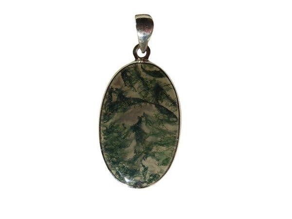 Exclusieve edelsteenhanger van mos-agaat uit India en sterling zilver.