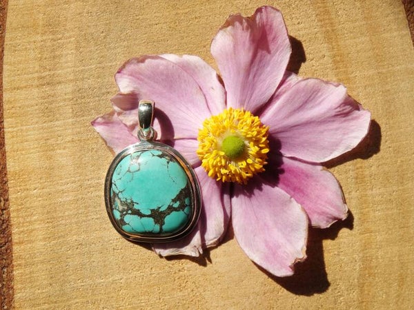 Exclusieve edelsteenhanger van turquoise (turkoois) en sterling zilver.