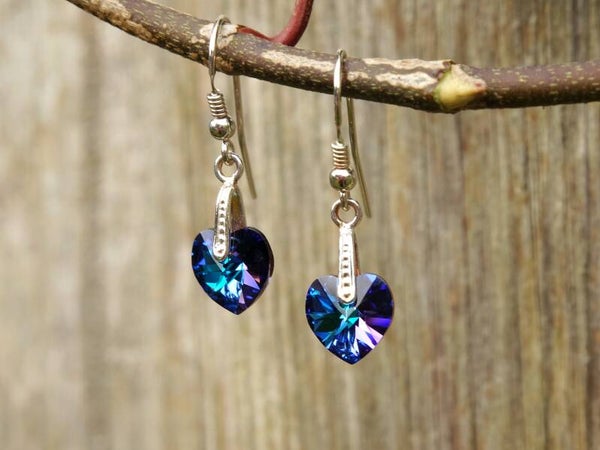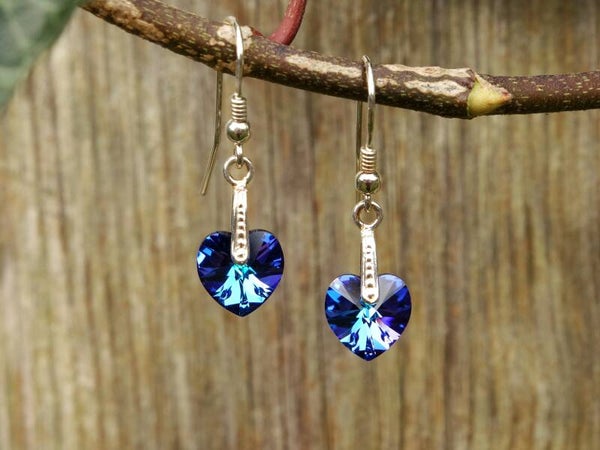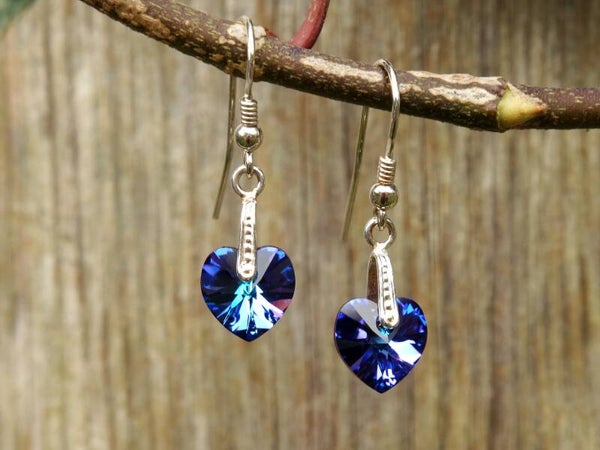 De Heliotrope Swarovski® kristallen hebben een blauwpaarse kleur, de precieze kleur is sterk afhankelijk van de hoeveelheid licht die op de oorbellen schijnt.