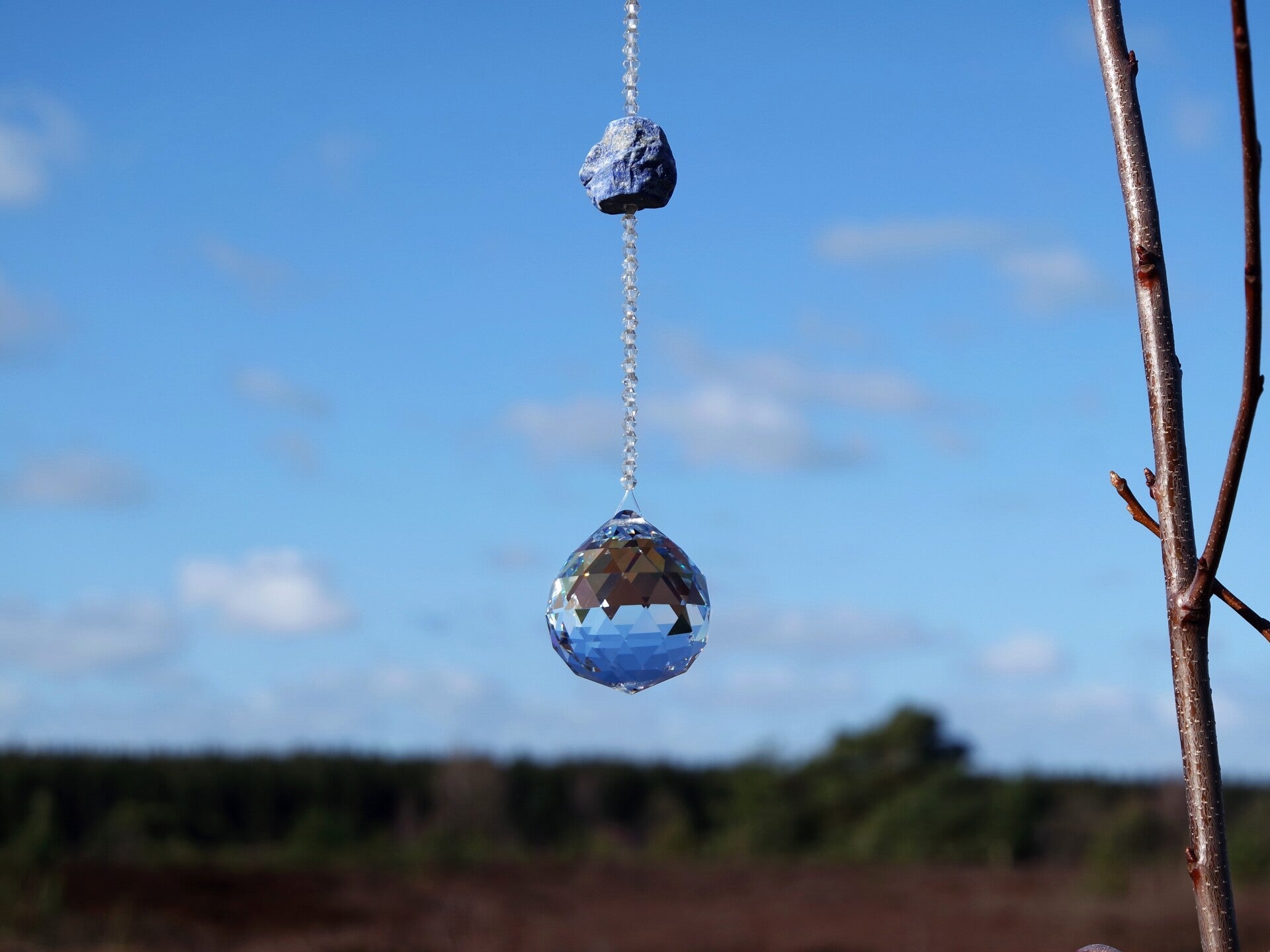 Zonnevanger met natuurlijke (ruwe) lapis lazuli en een regenboogkristal van 40mm