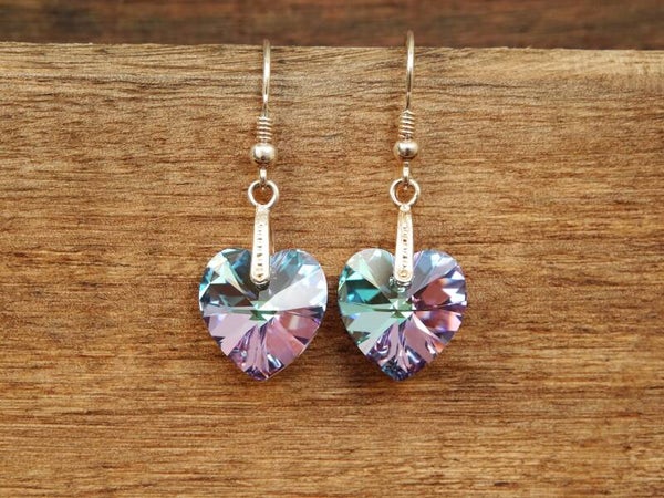 Sterling zilveren oorbellen met echte Swarovski® elements: hangertjes 'hart' in de kleur paarsblauw - Vitrail Light
