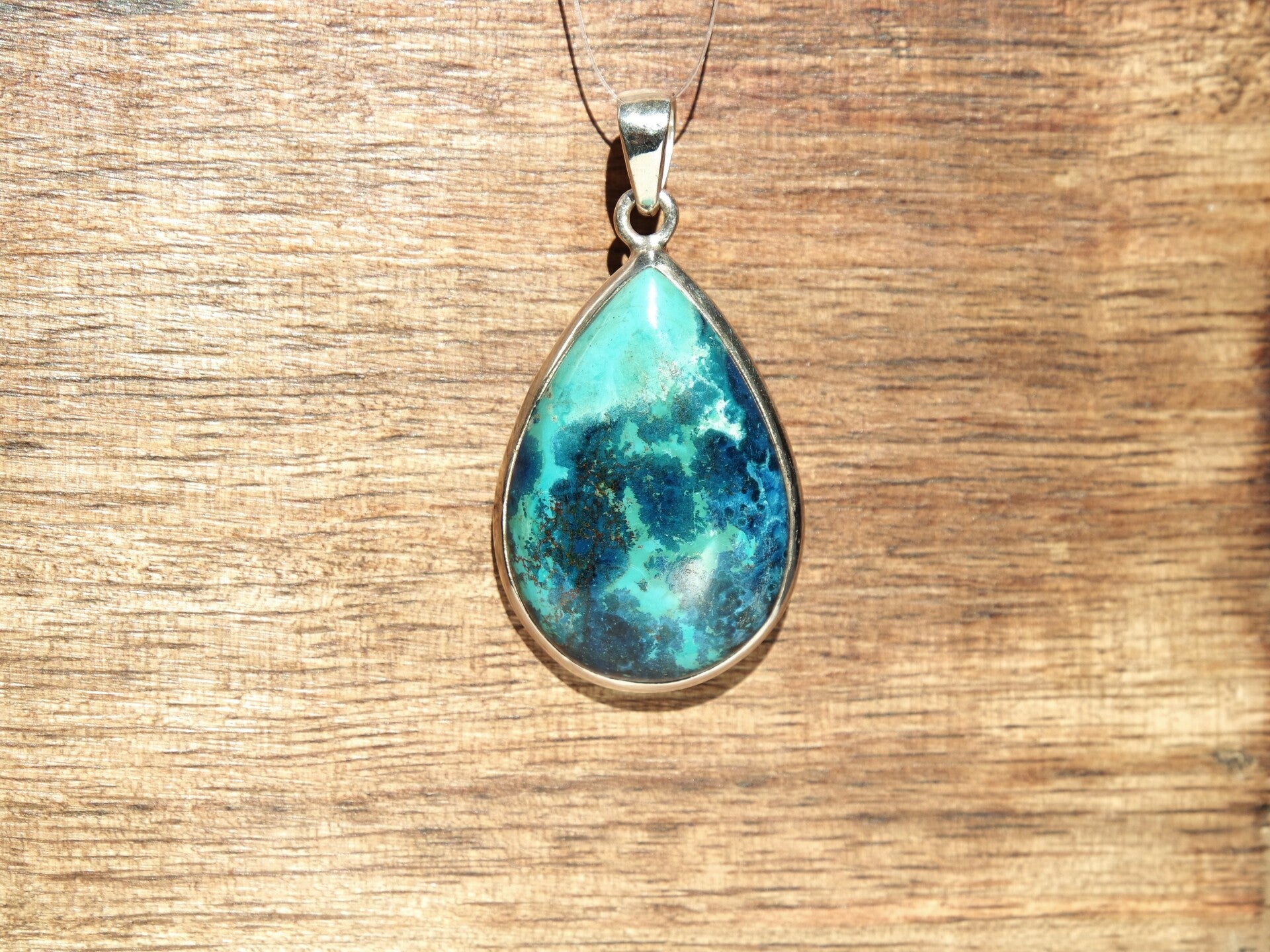 Exclusieve edelsteenhanger van natuurlijke blauwe Shattuckiet uit de USA en sterling zilver.